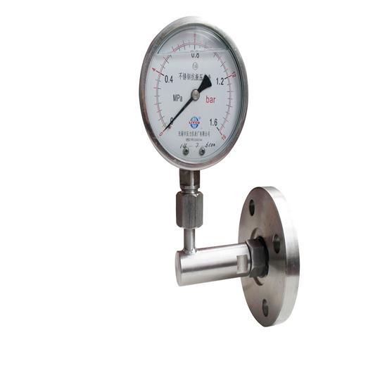 該類儀表以隔片隔離裝置將被測介質與壓力表表頭分開,以滿足保護測量元件和特殊適用場合的測壓需求。廣泛用于石油、化工、醫藥、食品、造紙、噴涂等行業測量具有強腐蝕性、高粘度、易結晶、含有固體顆粒的液體介質壓力。